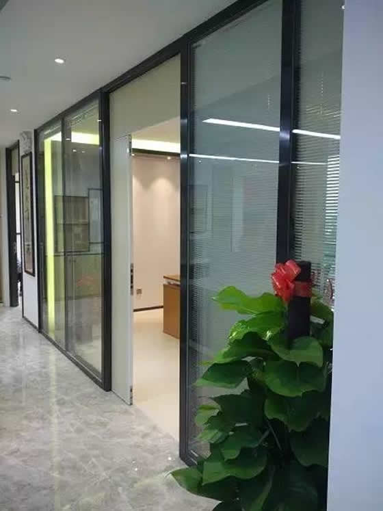 雙玻隔斷即雙層玻璃隔斷,其基本結構是由雙層玻璃和鋁金屬型材構成的隔斷墻體,牢固耐久,整體感更強,且雙層玻璃中間加入各式百葉,可實現更多效果